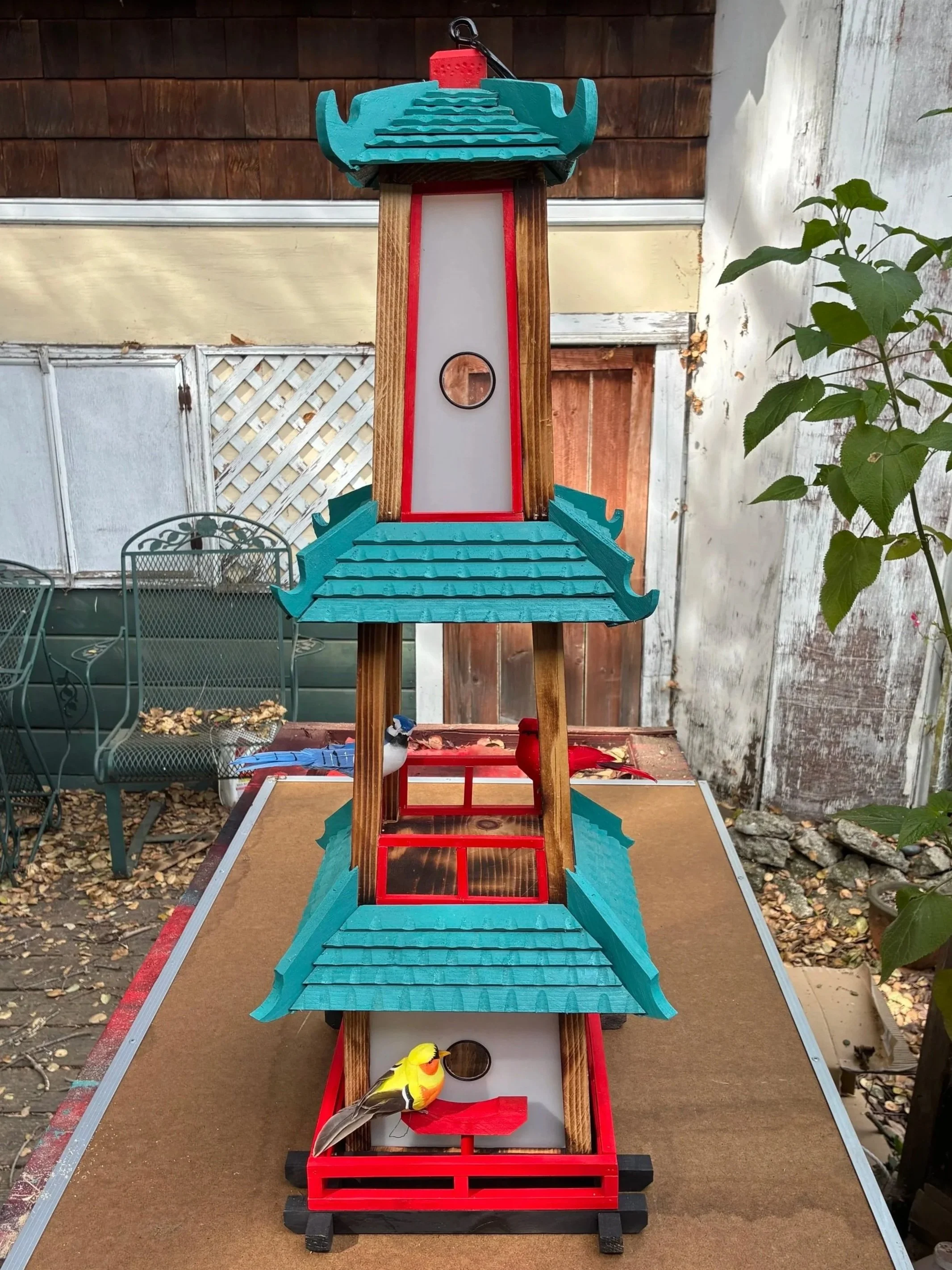 3-Tier Japanese Pagoda Birdhouse + Feeder